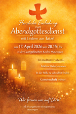 Herzliche Einladung zum Abendgottesdienst mit Liedern aus Taizé